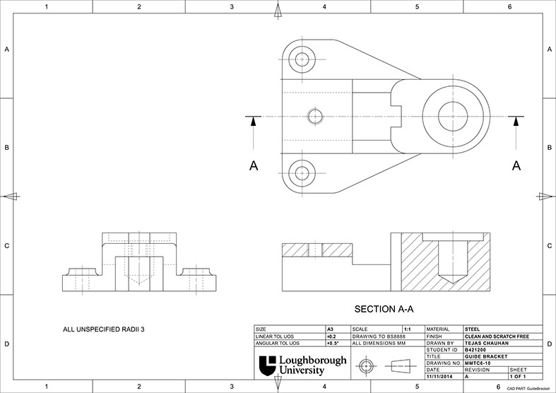 Guide Bracket NX Technical Drawing